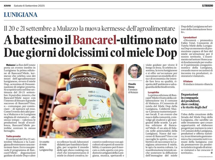 La sede di Mulazzo, non è casuale: un borgo riconosciuto fra i “Borghi più belli d’Italia” dall’omonima associazione, già sede di Bancarel’Vino, rassegna dedicata ai vini locali, a sua volta ispirata al famoso Premio Bancarella, dedicato ai libri che nacque proprio in questo comune, precisamente a Montereggio. Il Sindaco di Mulazzo, Claudio Novoa, è entusiasta del progetto: “Questa prima edizione di Bancarel’Miele è un atto di fiducia nel nostro territorio e nelle sue potenzialità. Nasce dal successo di Bancarel’Vino e ne raccoglie lo spirito, con l’obiettivo di raccontare la Lunigiana attraverso il miele, le api e la nostra cultura. Vogliamo dare un impulso forte alla diffusione del miele DOP della Lunigiana nel settore della ristorazione locale e promuovere la costituzione della Strada del Miele DOP della Lunigiana, creando opportunità e progetti per mettere in rete i 14 Comuni della Lunigiana, produttori e offerta turistica.”