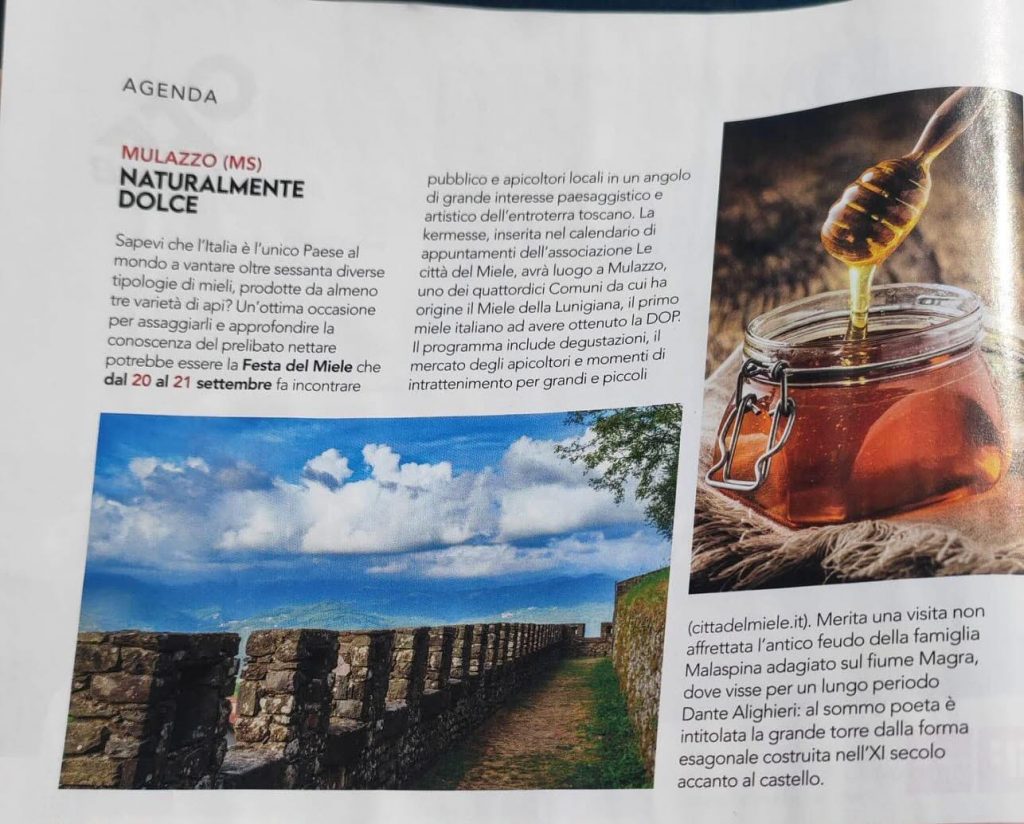 La rivista Plein Air, punto di riferimento per il turismo in caravan e camper, dedica un articolo al Miele della Lunigiana DOP e al Bancarel’Miele che si svolgerà a Mulazzo il prossimo 20 e 21 Settembre